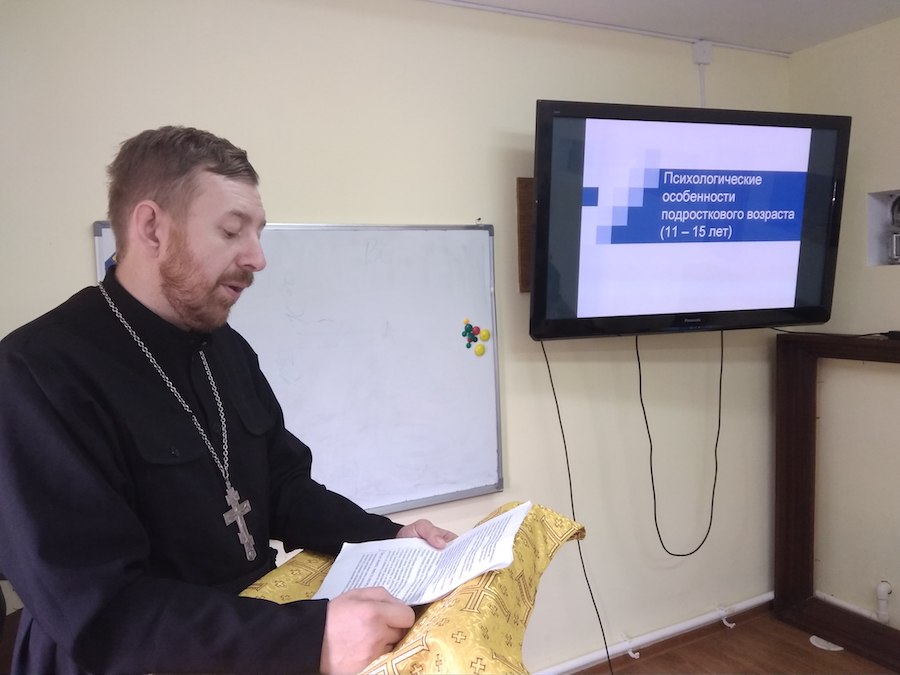 Иерей Сергий Новиков на живых примерах показал психологические особенности детей подросткового возраста и поделился опытом преподавания им вероучительных дисциплин. Варвара Владимировна Новикова раскрыла тему применения активных методов обучения в воскресной школе. А Полина Васильевна Москаленко предложила решать проблему ухода из Церкви подростков через личностное общение с учащимися.