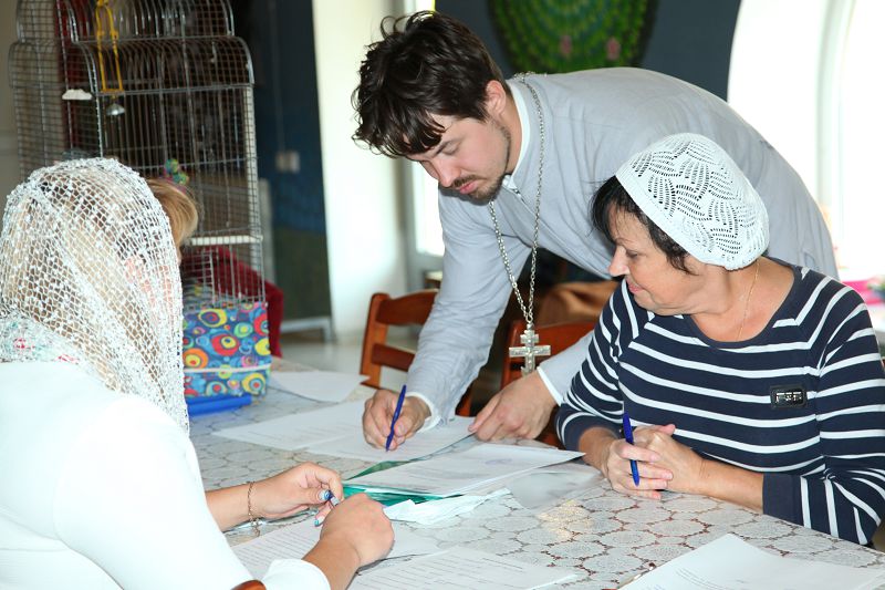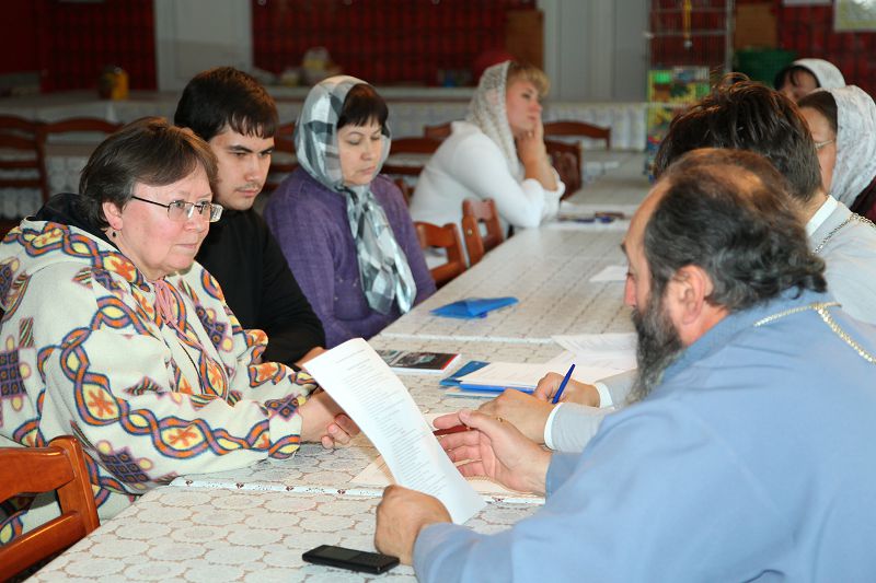 По окончании собеседования с напутственным словом к абитуриентам обратился отец Александр. Он поблагодарил собравшихся за их тягу к знаниям и желание обучаться на катехизаторских курсах.