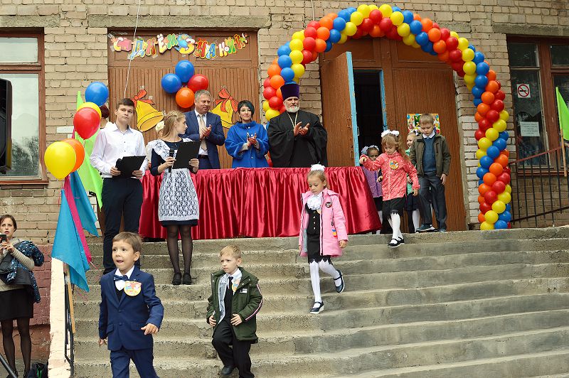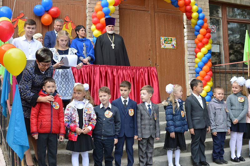 ОРСК. 2 сентября 2019 г. Руководитель епархиального отдела по церковной благотворительности и социальному служению протоиерей Вячеслав Кочкин посетил юбилейные праздничные линейки в честь Дня знаний в средних школах № 52 и № 11.