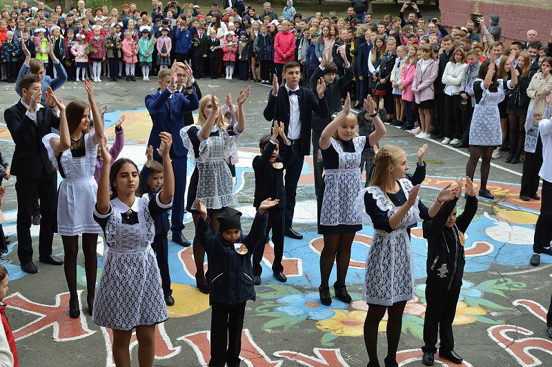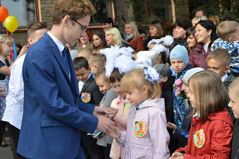 Главными на празднике знаний были первоклассники. Их трогательные выступления вызвали улыбки. Затем выпускники подарили им небольшие подарки. Заканчивали праздничные линейки первые школьные звонки. Затем выпускные классы помогли маленьким ученикам зайти в школы, где для них начался первый в жизни Урок знаний.