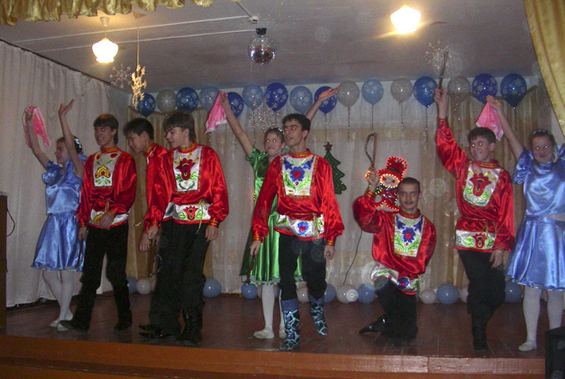 Прибыв в Дом-интернат, гости сразу почувствовали, что их здесь очень ждали, к встрече с ними готовились: ребята были одеты в концертные костюмы, девочкам плели косы, украшенные лентами. Оказывается, воспитанники учреждения в качестве ответного подарка также подготовили концертную программу. Таким образом, на сцене выступления гостей перемежались с номерами принимавшей стороны.