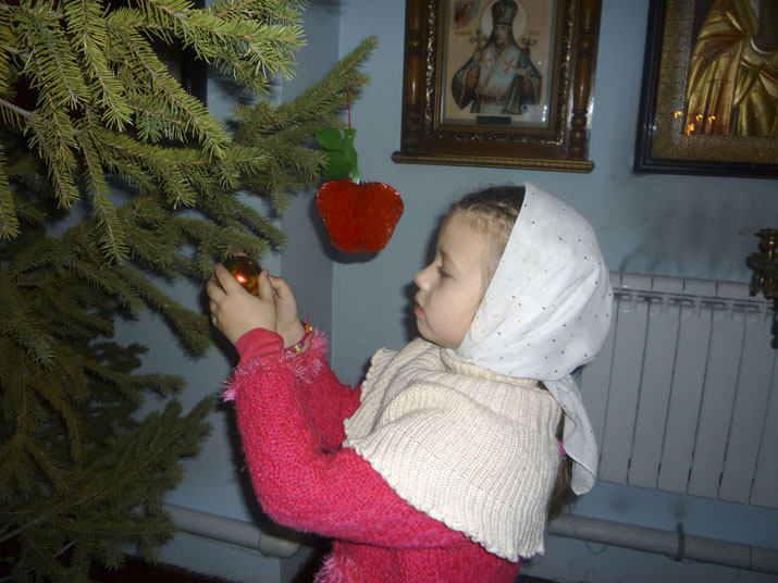 «Волхвы пришли к яслям не с пустыми руками, а принесли Младенцу дары». Ребятишки тоже готовят свои дары Сыну Божьему. Самый любимый и веселый праздник для них – Рождество Христово и они немало потрудились ради этого дня. Вовсю идет подготовка к празднику: младшая группа готовит спектакль, идут репетиции детского хора, а сегодня дети занимались, пожалуй, самым любимым делом – украшением елей. С первого Рождественского праздника в возрожденном храме настоятель храма протоиерей Анатолий Сопига устанавливает величественные ели. Поначалу их украшали взрослые прихожане, но вот уже на протяжении многих лет эту веселую и приятную обязанность выполняют ученики воскресной школы. Родители тоже не остаются в стороне и с удовольствием помогают ребятишкам. А педагоги находят минутку, чтобы еще раз провести репетицию. 13 января, после Божественной литургии, для прихожан храма состоится детский Рождественский праздник.