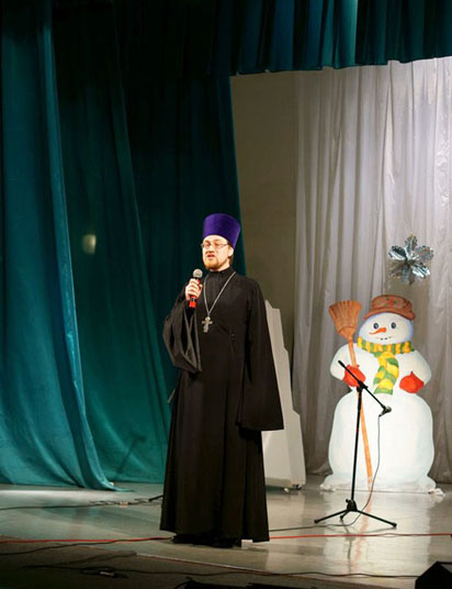 От лица духовенства Орской епархии поздравить собравшихся прибыл иерей Андрей Ионов, клирик храма св. вмч. Георгия Победоносца г. Орска. Отец Андрей рассказал присутствующим о смысле праздника Рождества Христова и выразил пожелание не забывать о Христе, Который является главным на этом празднике.