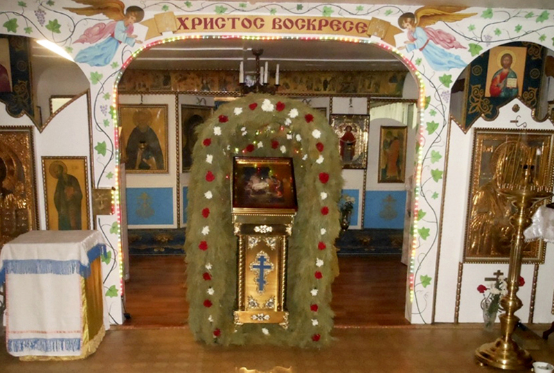 Праздник Рождества Христова – величайший годовой праздник, отмечаемый Церковью с особой торжественностью. Рождение Христа свершилось давно, а Церковь снова и снова воспевает: «Христос Рождается!». В центре храма Покрова Пресвятой Богородицы устроен Вертеп из сосновых ветвей и цветов. Внутри икона Рождества Христова.