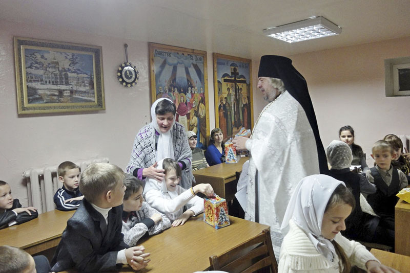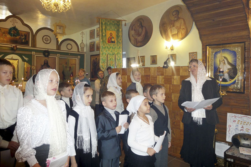 После выступления игумен Онисим вручил ученикам воскресной школы рождественские подарки. Затем в библиотеке храма прошли три урока с пением рождественского тропаря, просмотром фильма и обобщающей беседой о Рождестве Христовом. На уроках всегда присутствуют родители, бабушки и дедушки учеников, так что школа носит семейный характер.