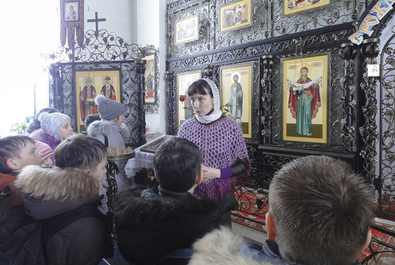 Очередное занятие по новому предмету для ребят прошло в виде экскурсии по храму, которую провела автор этих строк, помощник медногорского благочинного по религиозному образованию и катехизации. Ребятам было рассказано о храме и о том, зачем люди ходят в церковь, а также о том, что такое молитва. Не менее интересно им было узнать, какое значение имеют иконы в жизни православного христианина, чем они отличаются от обычных картин и как нужно относиться к святым образам. Дети узнали о двунадесятых праздниках и житиях некоторых святых, чьи иконы находятся в храме.