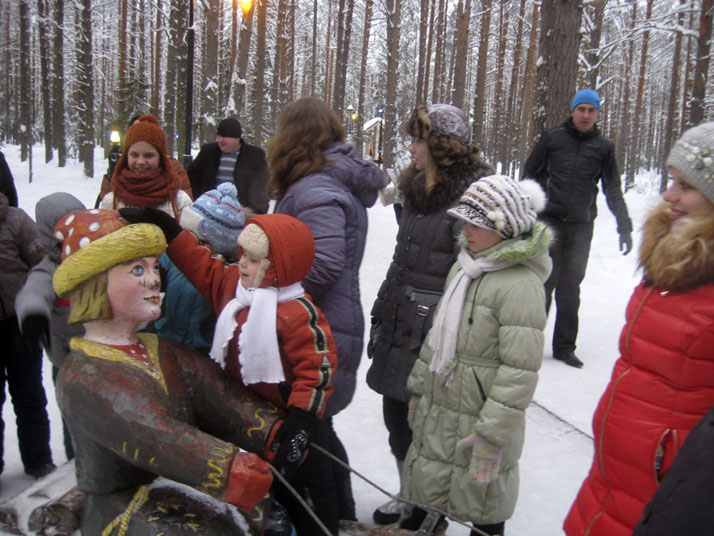 В тот же день Василиса с батюшкой побывали на «Рождественских посиделках», где крестьянская изба, теплая печь, северный окающий говорок, традиционные костюмы, акапельное пение и другие элементы обстановки помогают окунуться в атмосферу деревенского праздника.