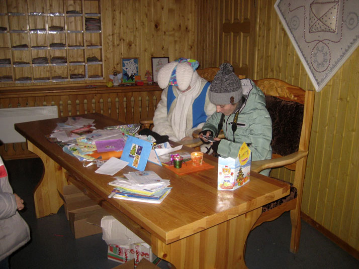 Не менее интересным было посещение Почтового отделения Деда Мороза. Круглый год со всего света приходят письма и открытки российскому Деду Морозу. Именно здесь, в сказочном почтовом отделении в Великом Устюге, письма сортируются.