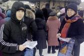 НОВОТРОИЦК. 19 января 2013 г. В день праздника Крещения Господня молодые прихожане собора святых апостолов Петра и Павла, а также слушатели епархиальных катехизаторских курсов приняли участие в раздаче катехизических буклетов «Святая вода для святой жизни».