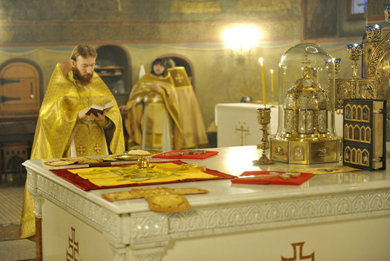МОСКВА. 1 февраля 2013 г. В годовщину интронизации Святейшего Патриарха Московского и всея Руси Кирилла в кафедральном соборном храме Сретения Владимирской иконы Божией Матери мужского ставропигиального Сретенского монастыря была совершена Божественная литургия. Братии монастыря сослужили представители Московской, Орской, Новокаховской епархий Московского Патриархата. В богослужении участвовал руководитель миссионерского отдела Орской епархии, настоятель храма архангела Михаила г.Орска иерей Геннадий Новиков.