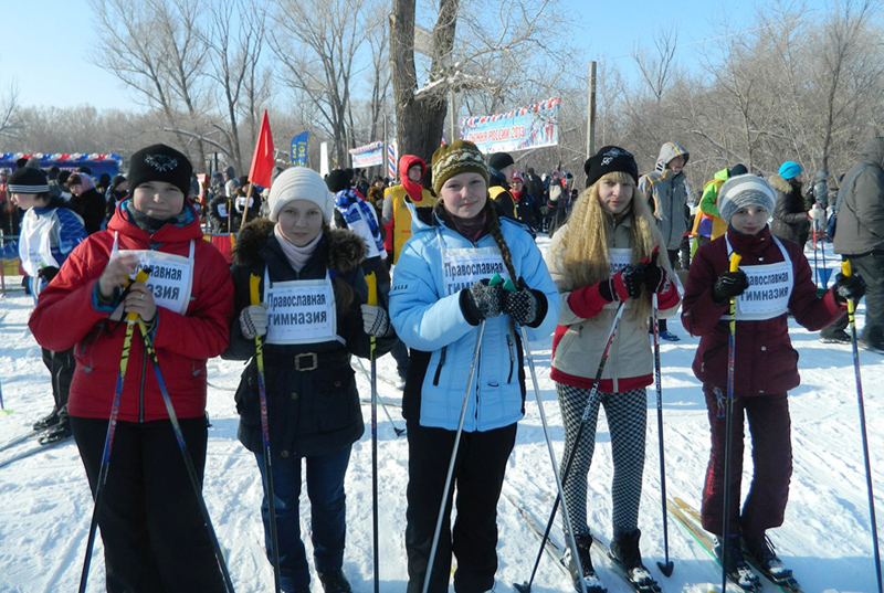 ОРСК. 9 февраля 2013 г. Учащиеся Православной гимназии во имя святых Царственных страстотерпцев при приходе Преображения Господня впервые приняли участие во Всероссийской массовой лыжной гонке «Лыжня России-2013».