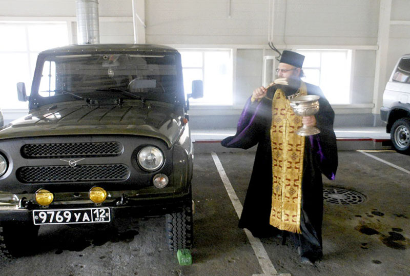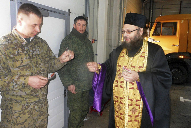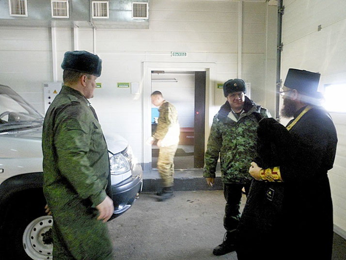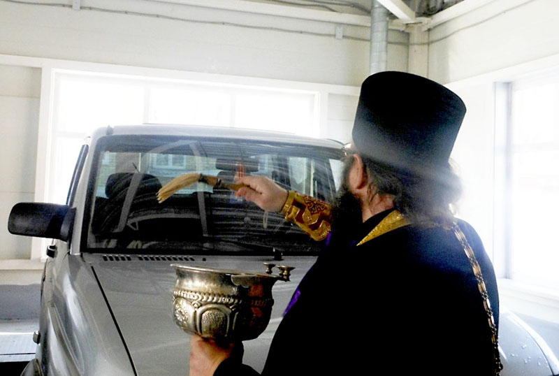 В очередной раз посетил отец Игорь духовно окормляемую воинскую часть пограничного отдела, где по просьбе командования совершил освящение всего подведомственного автотранспорта и здания котельной. «Благословен Бог наш всегда, ныне и присно, и во веки веков…» – отец Игорь начал чин освящения. И с первыми словами священника в окна здания автопарка буквально полился яркий солнечный свет, сопровождающий настоятеля до окончания освящения. Во время совершения чинопоследования священник призывал благословение Божие на технику, помещения и на всех несущих службу сотрудников, чтобы вся их деятельность осуществлялась с помощью Господней.