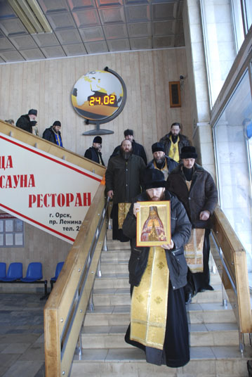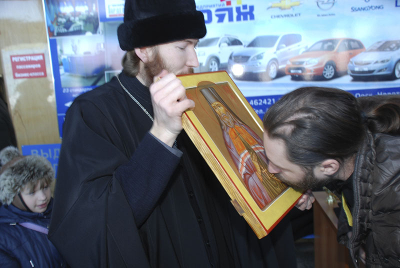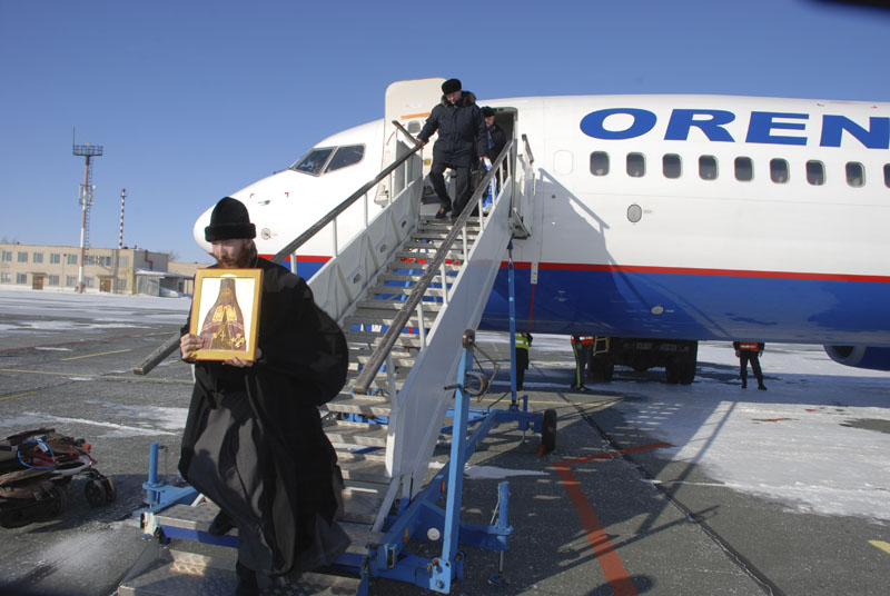 24 февраля в аэропорту г. Орска многочисленное духовенство епархии торжественно встречало великую святыню. Здесь же, в часовне аэропорта во имя Табынской иконы Божией Матери, состоялся благодарственный молебен с чтением акафиста святителю Иннокентию.