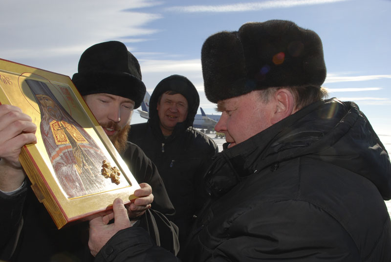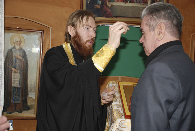 Затем икону доставили в поселок Степной, в храм св. Архангела Михаила, где она будет пребывать постоянно. После благодарственного молебна отец Геннадий рассказал о своей духовной связи с сибирской землей.