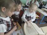 Во время творческой части на мероприятии школьники пробовали сделать рукописную книгу своими руками. Закончить книгу ребята взяли на дом.