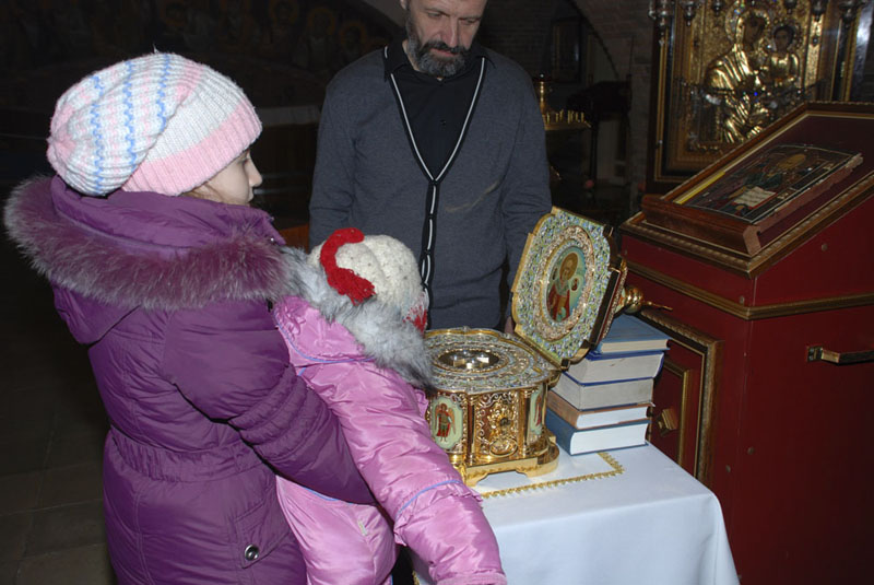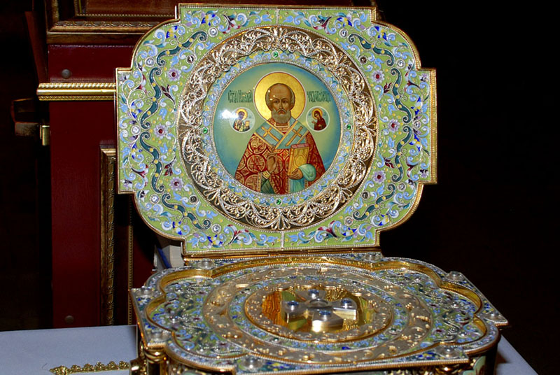Желающих поклониться святыне и помолиться Николаю Угоднику рядом с его святыми чудотворными мощами было так много, что пришедшим приходилось выстаивать до входа в храм очередь длиной в несколько десятков метров. Весь день в кафедральном соборе служились молебны и читались акафисты святителю Николаю, архиепископу Мир Ликийских, чудотворцу.