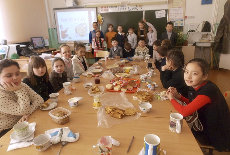 День закончился праздничным столом в классе с блинками, чаем, приготовленными ребятами угощениями. Валентина Николаевна передала ребятам благословение батюшки на их приход в храм, напомнила о значении завтрашнего дня, что нужно быть в храме в день Всеобщего покаяния – в Прощеное воскресенье.