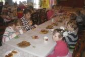 Забавы всем пришлись по душе. Незаметно пролетел целый час, а в зале Центра уже ждали всех накрытые столы с горячим чаем, блинами и сладостями. Ребята с аппетитом приступили к ароматной, вкусной трапезе. Вдобавок столы с самоваром и блинами были накрыты и на улице. Масленицу проводили весело, с задором. Здравствуй, Великий пост!