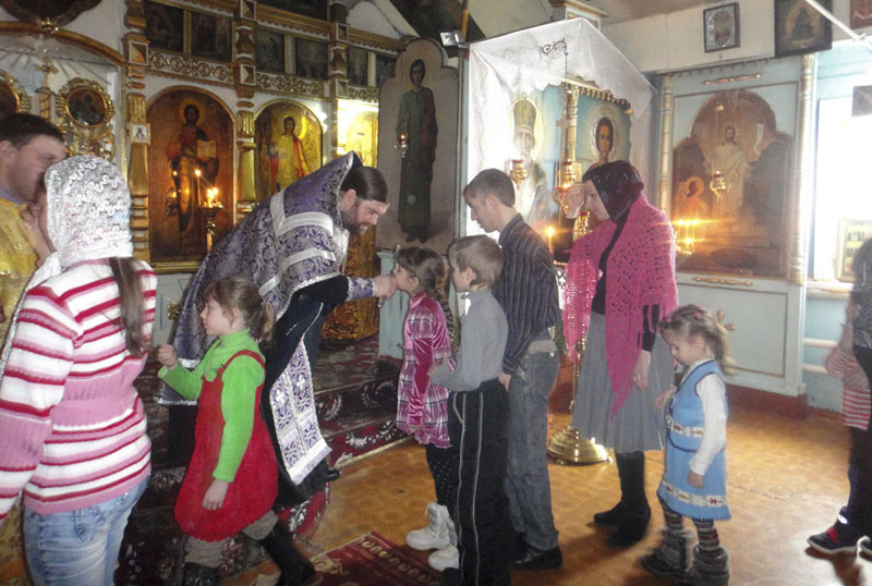 МЕДНОГОРСК. 17 марта 2013 г. В Прощеное воскресенье, завершающее собой Сыропустную седмицу, преподаватели и воспитанники воскресной школы храма святителя Николая чудотворца г. Медногорска п. Заречного собрались вместе со своими родными и друзьями. К началу Великого поста они готовились с трепетом и с большим удовольствием.