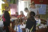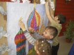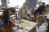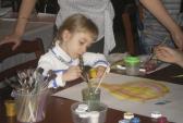 Наконец, наступило самое приятное для ребят: их пригласили разукрасить заранее подготовленные педагогами эскизы трех куполов. А одна из групп под руководством Ирины Кузнецовой приступила к созданию бумажных голубей. Ребята принялись за творчество без преувеличения с горящими глазами. Работа кипела! Объединившись в небольшие группы, под присмотром педагогов юные мастера создавали свои маленькие шедевры. Было удивительно наблюдать, как дружно и слаженно трудились ребята разных возрастов, с каким энтузиазмом они выполняли предложенное задание.