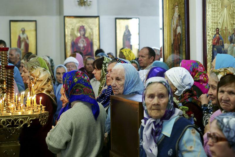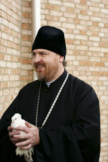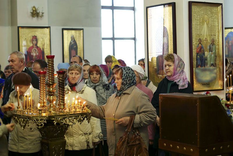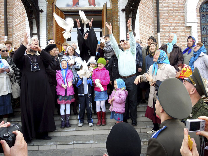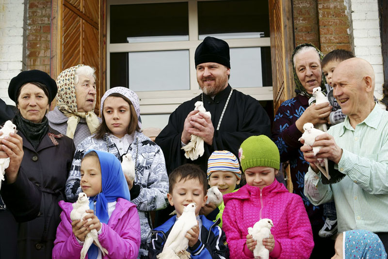 Храм был полон молящимися. После службы отец Валерий рассказал о празднике, а потом, по традиции, верующие выпустили на волю стайку голубей.