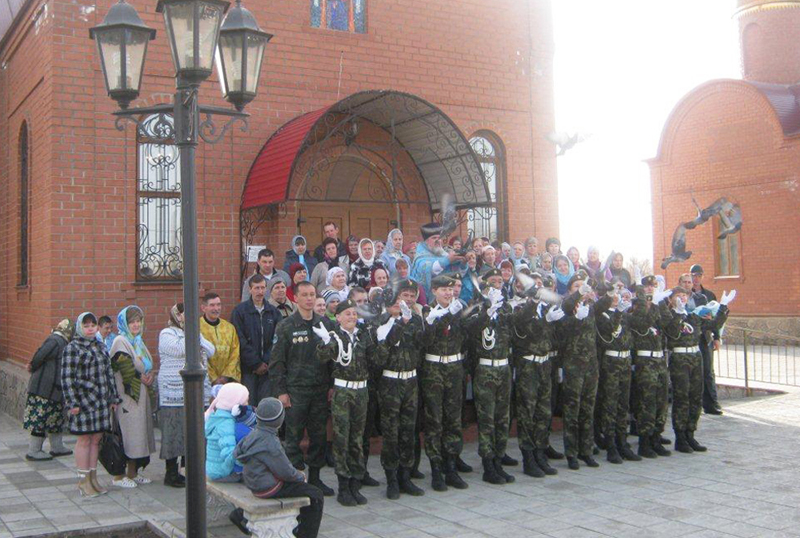 Накануне было отслужено всенощное бдение с выносом Честнаго Креста Господня для поклонения верующим. После проповеди на территории храма по традиции были выпущены на волю птицы. В зрелищной церемонии приняли участие дети кадетского класса Адамовской средней школы №1.