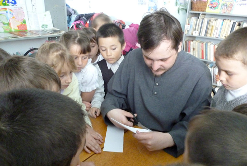 Встреча началась с простого знакомства, после которого батюшка беседовал с детьми о приближающемся празднике Светлой Пасхи Христовой, о добрых делах, о перелетных птицах, вернувшихся из теплых краев. Затем отец Феодор научил ребят делать из бумаги лебедя (оригами) и пригласил их вместе с родителями посетить храм и воскресную школу. Дети с радостью откликнулись на приглашение и в свою очередь также попросили батюшку о последующих встречах с ними. Татьяна Николаевна также довольна результатом встречи и рассчитывает на дальнейшее сотрудничество со священнослужителями епархии.