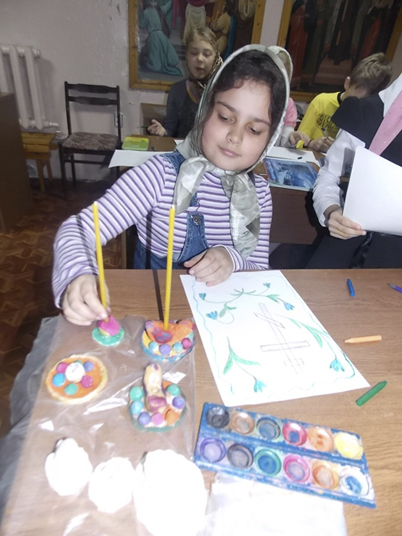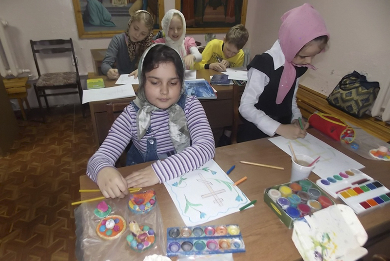 ЯСНЫЙ. 12 апреля 2013 г. На Крестопоклонной неделе в воскресной школе прихода храма вмч. Пантелеимона состоялся урок творчества. На занятии ребята рисовали, лепили, а также вели заключительную работу по раскрашивание поделок, созданных собственноручно.