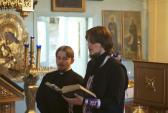 Богослужение началось с исповеди, которую провел исполняющий обязанности благочинного Новотроицкого округа, духовник курсов протоиерей Валерий Чемский. Директор курсов иерей Максим Бражников и руководитель отдела по работе с воскресными школами диакон Григорий Сычев читали правило ко Святому Причащению. Затем отец Валерий возглавил изобразительны и Литургию Преждеосвященных Даров. На клиросе пели преподаватели курсов, а учащиеся попробовали себя в качестве чтецов, алтарников и звонарей. В конце богослужения все причастились Святых Христовых Таин.