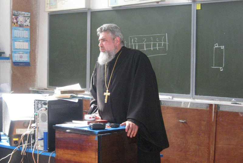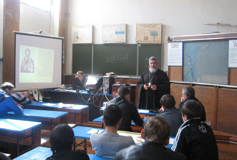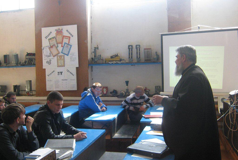 АДАМОВКА. 25 апреля 2013 г. Благочинный Адамовского округа иерей Вячеслав Кочкин, руководитель отдела по взаимодействию с лечебными учреждениями Орской епархии, прочитал лекцию о семейных ценностях студентам двух групп механического отделения Адамовского сельскохозяйственного техникума.