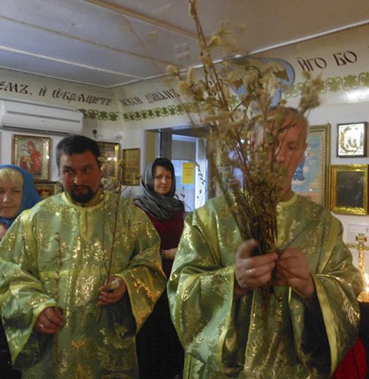 Накануне праздника, на вечерней службе, было совершено освящение веточек вербы, символизирующих вечную победу жизни над смертью. В воскресный день на праздничном богослужении прихожане молились, держа в руках освященные веточки вербы, встречая грядущего на страдания Спасителя как истинного Царя, который, как сказал на проповеди настоятель храма протоиерей Игорь Никифоров, «…должен царствовать в душах и сердцах каждого из нас».