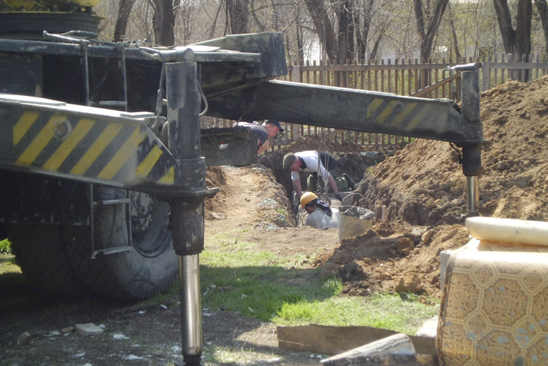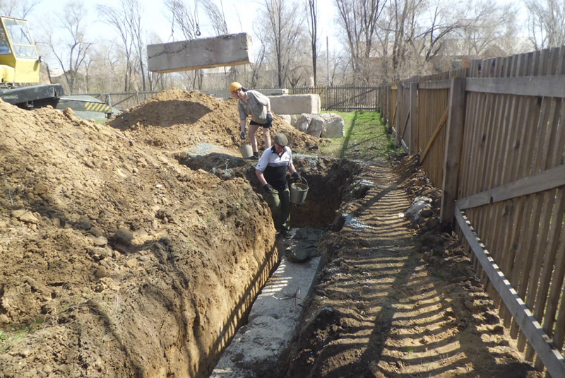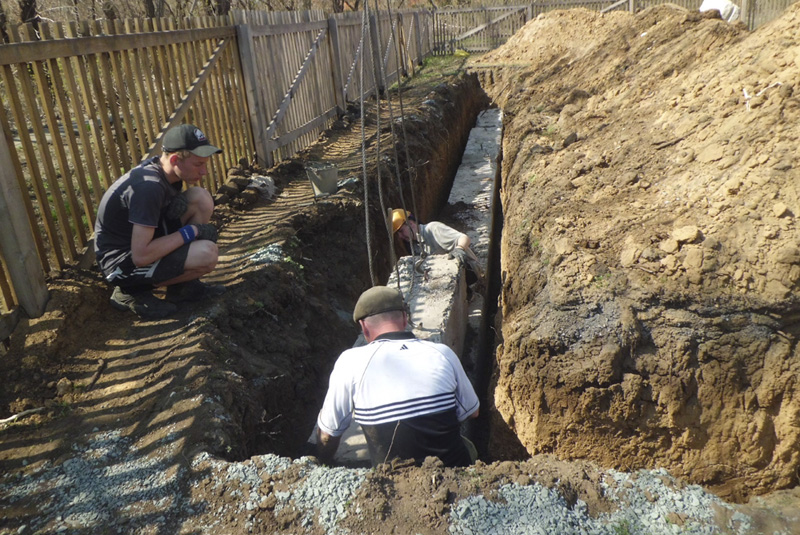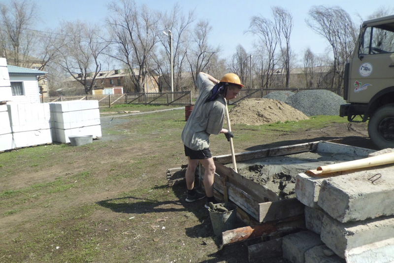 И вот (22 апреля) пригнали технику, рабочие приступили к закладке бетонных блоков под фундамент намеченного здания. Дела пошли полным ходом! Работа спорится! Прихожанки организовали помощь для питания строителей. На сегодняшний день уже на готовый фундамент ложится кирпичная кладка… Бог в помощь!