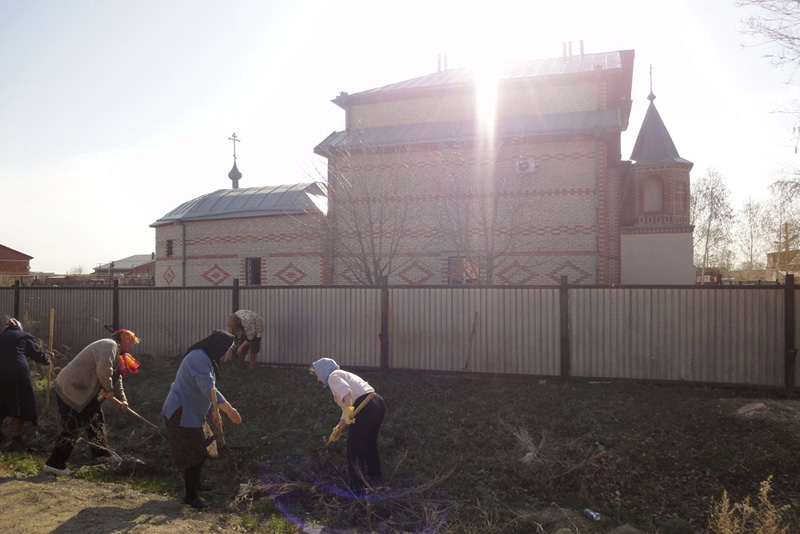 Первым этапом стало Вербное воскресенье, когда настоятель храма батюшка Онисим тепло поблагодарил всех прихожан за активное участие в акции «Мой храм» и предложил в Чистый четверг не только всем причаститься после исповеди в Великую среду, но и завершить трудовые дела в приходе. В этот день Василий Попов обновил церковную вывеску и покрасил крест у центрального входа, а сестра хозяйка храма Ираида Игнатова с прихожанками высадила первые цветы на самой главной клумбе. Прихожане пополнили инвентарь, побелили деревья и обновили вход в церковь. Совместные чаепития, несмотря на постные сухарики, были настолько теплыми и радостными, что укрепляли особый плодотворный настрой дружного и работоспособного прихода.