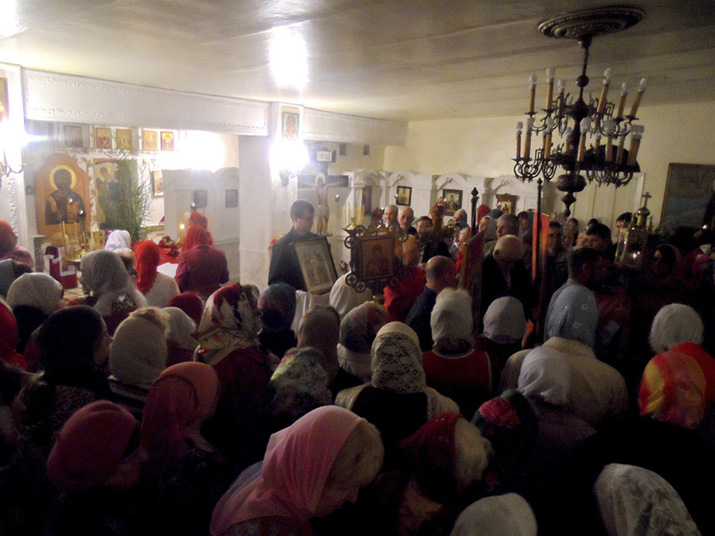Под пение стихиры «Воскресение Твое, Христе Спасе» вокруг храма был совершен крестный ход, весь церковный двор наполнился звуками радостного пасхального песнопения, которое подхватывалось собравшимися в церковном дворе людьми.