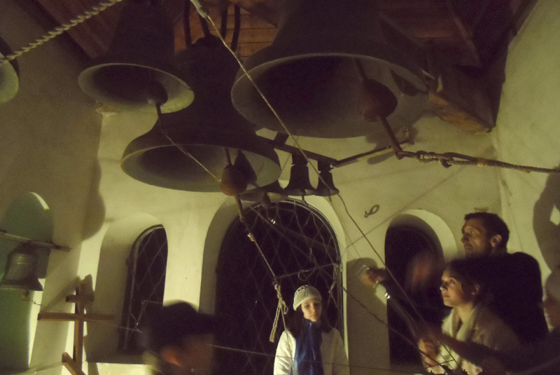 Дети в сопровождении приходского звонаря поднялись на колокольню храма и вдоволь звонили в колокола, возвещая окрестностям пасхальную радость. Многие впервые поднялись на колокольню и увидели церковный двор с ее высоты. Безусловно, эти светлые минуты надолго останутся в памяти у детей. Своими впечатлениями ребята незамедлительно поделились с настоятелем. Батюшка порадовался за своих воспитанников и вручил пасхальные гостинцы.