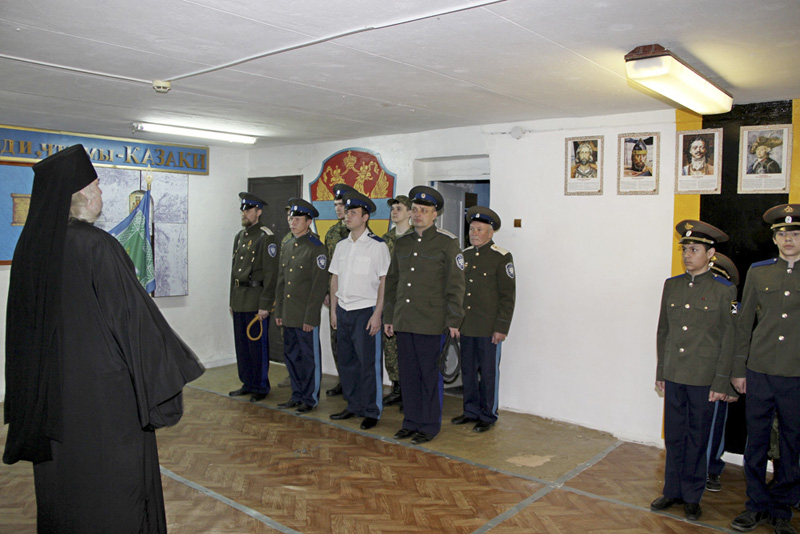 Любое событие в жизни казаков имеет право быть только при благословении его православным священником и при его присутствии, поэтому игумен Онисим получил приглашение прийти в казачий клуб, где не только собираются казаки на свои собрания, но и проходят занятия кадетского казачьего класса для ребят среднего школьного возраста.