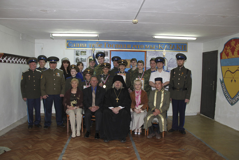 ЯСНЫЙ. 6 мая 2013 г. Сразу после празднования Светлой Пасхи Христовой в день памяти вмч. Георгия Победоносца в г.Ясном казаки традиционно отметили день Оренбургского казачества в своем клубе. На торжественное мероприятие были приглашены настоятель храма св. вмч. и Целителя Пантелеимона игумен Онисим (Пашинов), имам (среди ребят есть и мусульмане), а также глава администрации Ясненского района А.Клименко.