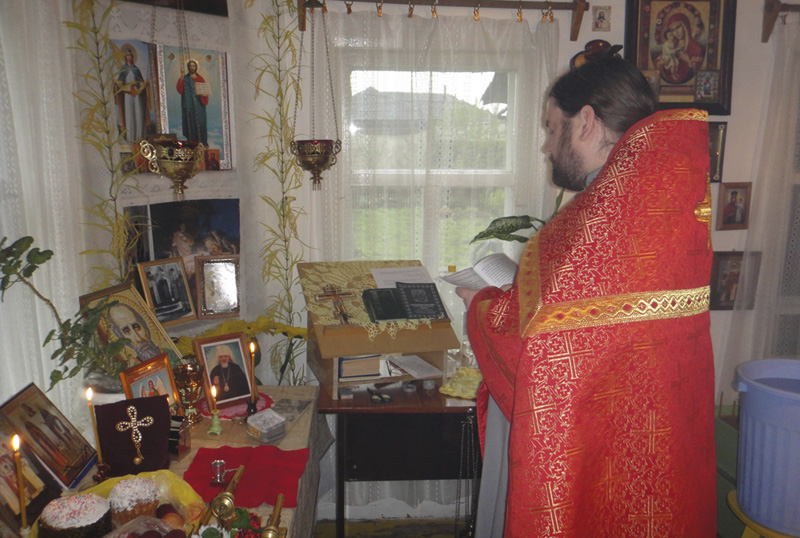 Отец Андрей посетил молитвенный дом св. апп. Петра и Павла села Сары и молитвенный дом Покрова Божией Матери села Новопокровки. Местные православные ждали батюшку с нетерпением. Отец Андрей поздравил прихожан с праздником Светлого Христова Воскресения, освятил куличи, пасхи и яйца. Многие причастились Святых Христовых Тайн. Были отслужены Пасхальные часы, канон Пасхи, хор исполнил и другие пасхальные песнопения.