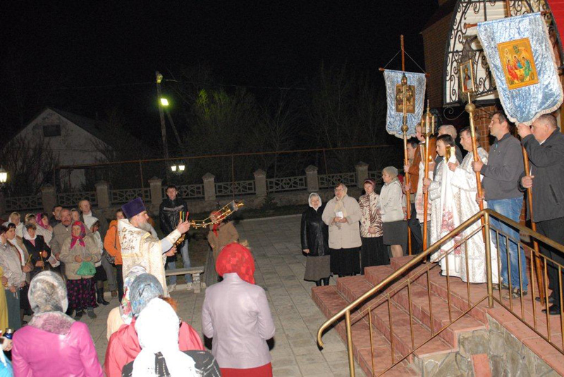 В ночь с 4 на 5 мая настоятель храма Покрова Пресвятой Богородицы иерей Вячеслав Кочкин начал служить Полунощницу Великой Субботы, во время которой прихожане смогли ещё раз поклониться Плащанице. В полночь Пасхальная утреня началась традиционным крестным ходом. И вот перед закрытыми дверьми храма, который в это время символизирует гроб Господень, зазвучали первые Пасхальные песнопения. С радостью и незабываемым восторгом прошла пасхальная служба. С большим вниманием прихожане слушали пасхальные послания Патриарха Кирилла и епископа Орского и Гайского Иринея. По окончании службы были освящены куличи, пасхи и разукрашенные яички. С приветствием: «Христос Воскресе – Воистину Воскресе!» – и пением тропаря праздника прихожане пошли по ночному посёлку, делясь со всеми радостью о воскресшем Господе!