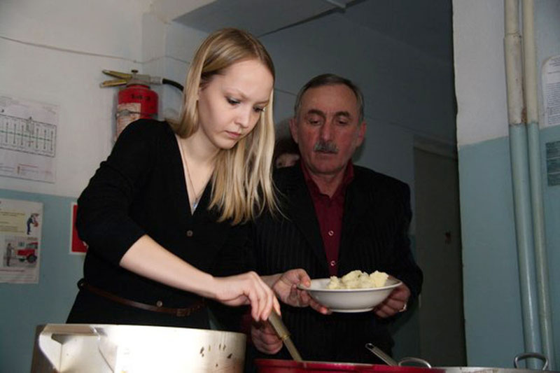 По традиции в Грузии с древних времён праздники обязательно совмещают с благотворительностью. И в этот раз, как и в прошлые грузинские праздники, Георгий Бенделиани с матушкой Светланой Солониной и помощниками накормили стариков из социального общежития вкусными супом-харчо, картошкой с мясом по-грузински и другими блюдами национальной кухни. Матушка Светлана раздала одиноким дедушкам и бабушкам пасхальные куличи. 30 пожилых людей были очень довольны, что их не забывают и помогают достойно отпраздновать Пасхальные дни и праздник св. вмч. Георгия Победоносца!
