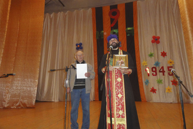 Затем в сельском клубе для ветеранов и жителей села состоялся праздничный концерт, где отец Сергий вручил председателю приходского совета храма пророка Божия Илии Николаю Киньшакову Архиерейскую грамоту за его неоценимый труд в деле восстановления и возрождения церковной общины на селе. Поздравив приход с. Ильинки с Пасхой Христовой, отец Сергий подарил приходу от имени прихожан храма, в котором является настоятелем, икону святителя Николая Чудотворца, вышитую бисером.