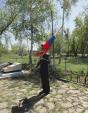 У мемориала воинской славы - Вечного огня - состоялся праздничный митинг. Батюшка обратился к собравшимся с приветственным словом, поздравив всех с праздником и пожелав ветеранам крепкого здоровья.