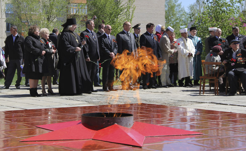 Как всегда рядом стояли православный священник и имам Восточной зоны, ведь очень много мусульман-тружеников тыла еще живы и ждали слово поминовения и благодарности от муллы. Батюшка вновь говорил о том, как мало осталось их, ветеранов войны, и что мы обязаны вспомнить их всех поименно и склонить голову в благодарность за Великую Победу.