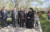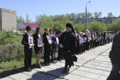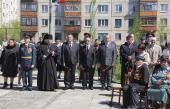 Затем после общения священника с администрацией Ясненского района в здании администрации, где вновь поднимались глобальные проблемы городка, начался митинг у обелиска Славы уже в самом Ясном. В нынешнем году только 16 ветеранов, участвовавших в той страшной и великой войне, осталось в живых во всем районе. И батюшка шел совершать благодарственный молебен через аллею школьников, державших портреты ветеранов Ясного, которых уже нет в живых. Вечная им память!