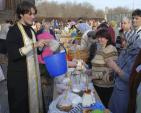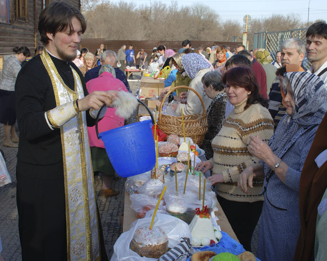 ОРСК. 14 апреля 2012 г. Православные христиане готовятся к встрече Светлого Христова Воскресения. После утреннего богослужения Великой Субботы и в течение дня во всех храмах освящают пасхальные куличи, творожные пасхи и крашеные яйца.