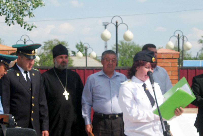 КРАСНОЯРСКИЙ. 17 мая 2013 г. Вместе с почетными лицами поселка настоятель храма св. вмч. Георгия Победоносца иерей Кирилл Зубков принял участие в митинге.