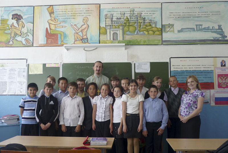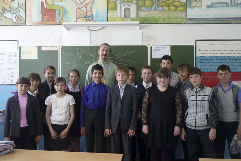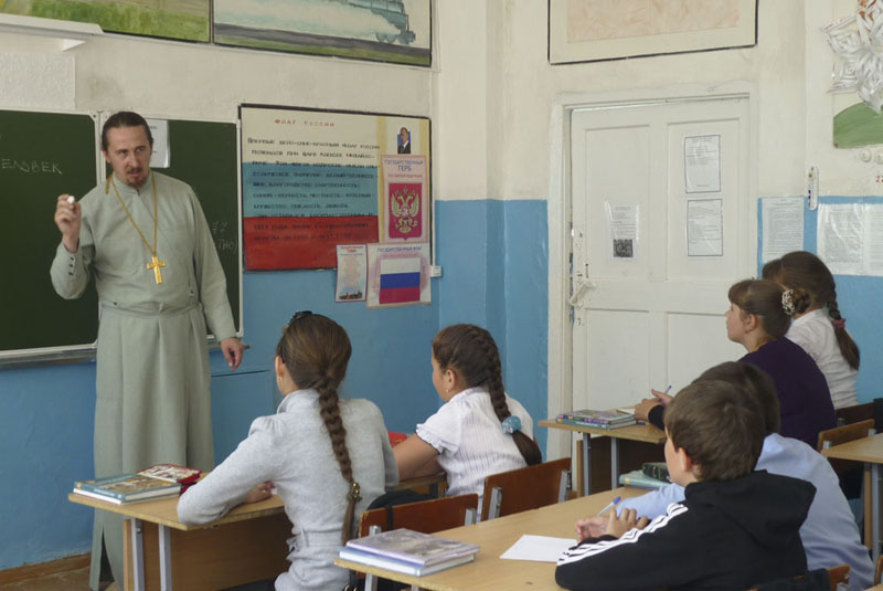 КВАРКЕНО. 17 мая 2013 г. В рамках соглашения о сотрудничестве между Орской епархией и отделом образования Кваркенского района настоятель храма Казанской иконы Божией Матери иерей Владимир Бабак провёл уроки в Кваркенской средней образовательной школе.