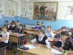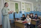 По приглашению учителя истории Л. Карповой священник провёл очередные школьные занятия. На этот раз это были два урока истории в 5"а" и 5"в" классах. Визит батюшки был не случайным и соответствовал календарной плановой теме занятия: "Христианство. Жизнь и учение Иисуса Христа. Церковь".