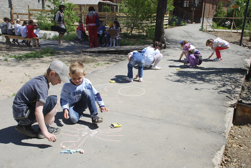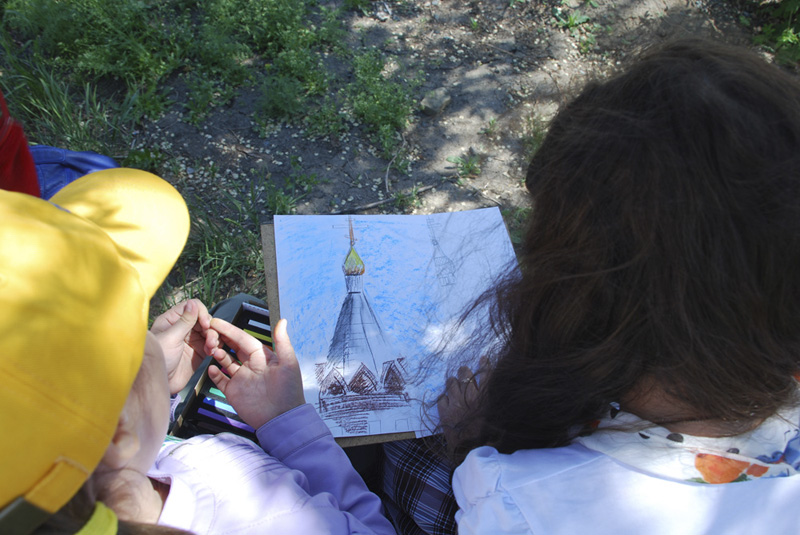 Много всего интересного было показано и рассказано, теперь же ребятам предложили проявить свои впечатления в рисунках. Малыши рисовали мелками прямо на асфальте недалеко от храма, а ребята постарше, взяв планшеты, воплощали свои эмоции от увиденного и услышанного на бумаге. Думается, после этой встречи ребятам захочется прийти в храм вместе со своими родными.