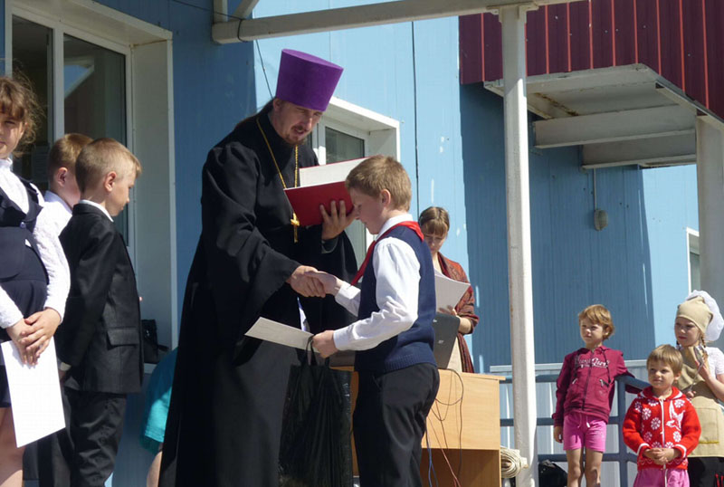 Отец Владимир присоединился к поздравлениям ребят, а вместе с тем поблагодарил школьников за участие в праздничной выставке "Светлая седмица" и в благотворительной акции "Поделись пасхальной радостью с другим", прошедших в рамках I Пасхального православного фестиваля Кваркенского района. Акция, направленная на помощь детям с ограниченными возможностями, была приурочена именно ко Дню детства. Священник в благодарность за труд наградил грамотами участников акции - детей и их воспитателей. Всего более 30 человек!